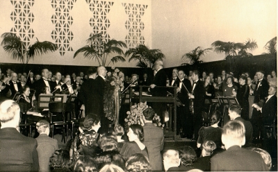 Orkest op podium vernieuwde Doelenzaal